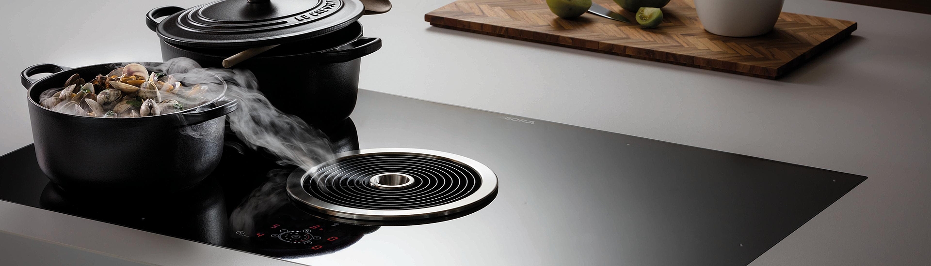כיריים אינדוקציה עם קולט אדים מובנה מבית BORA בורה דגם BASIC BFIA