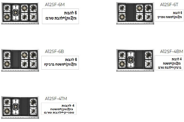 תנור אפיה משולב כיריים 120 ס"מ מבית STEEL סטיל דגם A12SF סדרת ASCOT-גימור ברונזה