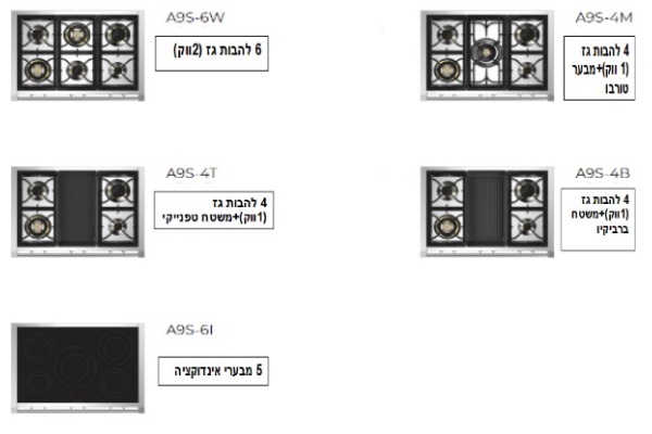 תנור אפיה משולב כיריים 90 ס"מ מבית STEEL סטיל דגם A9S סדרת ASCOT-גימור נירוסטה